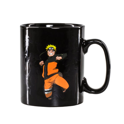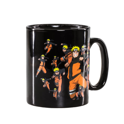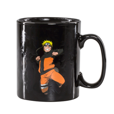 With the 460 ml Naruto Shippuden warming mug you can start the day like a real shinobi! As soon as you pour in a hot liquid, the design of the mug changes: behind Naruto, in keeping with his most famous jutsu, a whole host of shadow doppelgangers appear and under the logo on the back, kunai and shuriken whirl through the air! Speaking of which: we're sure you can also trigger this effect with a portion of ramen ;)