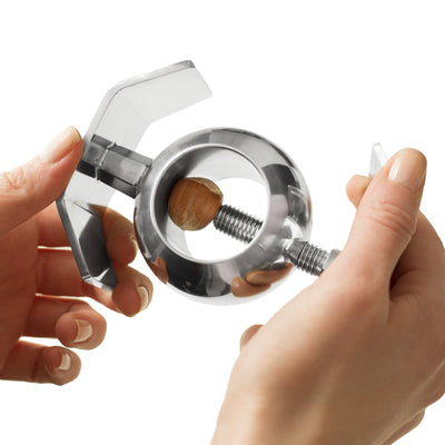 The operation is very simple: first, you turn one wing to retract the bolt. Keep turning until the nut fits into the "cockpit." Then place the nut and turn the wing back. With a few turns, you can crack even the hardest shell. :) The big advantage of the mechanism is that, unlike plier-shaped nutcrackers, you can hardly pinch your hand (unless you put your finger in instead of the nut), and even hard nuts can be cracked with minimal effort.