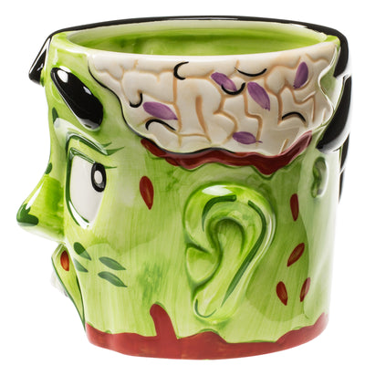 Now the head of this green and quite charming ceramic creature is empty and needs to be refilled. Either with brains... brain... drool... or with drinks like coffee, tea, or cocoa. Doesn't it also say that some hot drinks promote brain activity? Good thing the zombie head doesn't have one anymore.