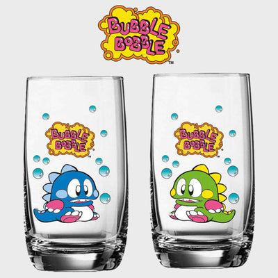 Der Anblick von Bub und Bob aus Bubble Bobble lässt einen schon sehr nostalgisch werden. Während heute Multiplayer-Games etwas völlig normales sind, war der Zwei-Spieler-Modus 1986 eine Art Revolution. Denn zocken kann schon manchmal ein wenig einsam sein. Viel schöner ist es doch, wenn man sowohl Siege als auch Niederlagen mit jemandem teilen kann. Mit dem Bubble Bobble Gläser Set kannst du stilecht deinem Player 2 zuprosten und auf alle geplatzten Blasen anstoßen.