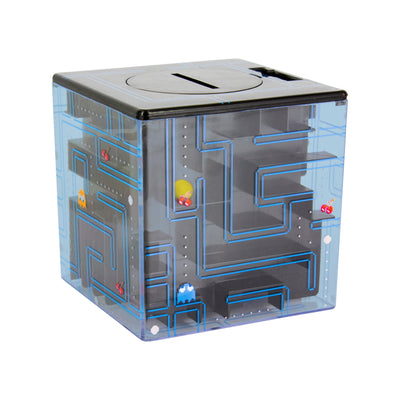 • Hucha con una ranura para monedas, diseñada al estilo del juego arcade Pac-Man; El exterior de la hucha es un laberinto como en Pac-Man, a través del cual debes guiar la bola amarilla para acceder a tus ahorros; Producto con licencia oficial