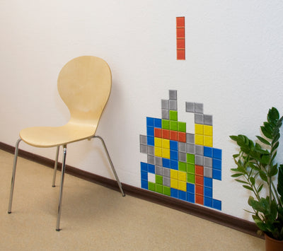 Con las pegatinas de pared de Tetris, puedes pegar un nivel del popular juego retro, que aún hoy se puede jugar en Internet bajo diferentes nombres, en la pared o, por ejemplo, en una puerta.