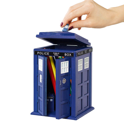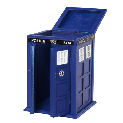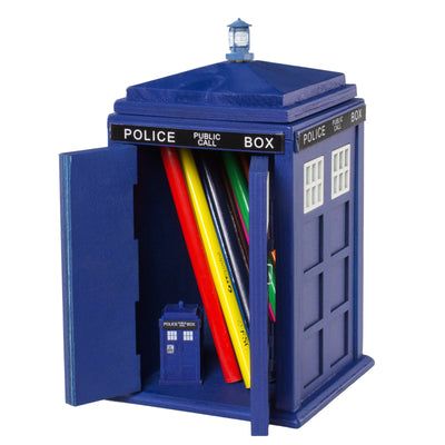 Ta version personnelle de l'emblématique boîte de police est fabriquée en bois et peinte à la main. Elle offre suffisamment de place pour les stylos, les règles et toutes les autres choses que tu peux avoir sur ton bureau (à l'exception des ordinateurs et des moniteurs). Les portes battantes et le toit s'ouvrent pour que tu puisses facilement cacher des choses aux Daleks. Et n'oublie pas que le TARDIS est plus grand à l'intérieur ;)