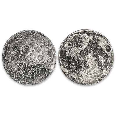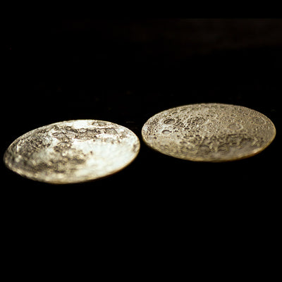 Avec les Pièces de Lune, tu peux désormais porter une version miniaturisée et détaillée de la Lune à l'échelle 1:136.794.240. Tu as le choix entre deux variantes qui diffèrent uniquement par le matériau utilisé : la Pleine Lune est traditionnellement en argent fin 999, tandis que la Lune d'Automne est en laiton avec des couleurs plus chaudes.