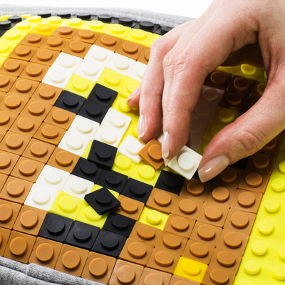 Le grand sac à bandoulière offre un espace créatif pour 364 Pixel sur la plaque en silicone à picots. Chaque sac est accompagné d'un paquet gratuit de pixels de différentes couleurs avec des suggestions de création, de sorte que tu puisses commencer directement. Les pixels que tu reçois gratuitement sont laissés au hasard, mais il y a toujours des modèles correspondant aux pixels pour créer, par exemple, des motifs comme sur nos photos de produits.