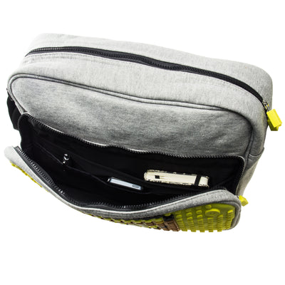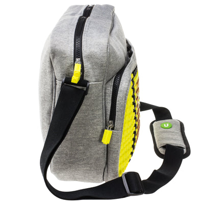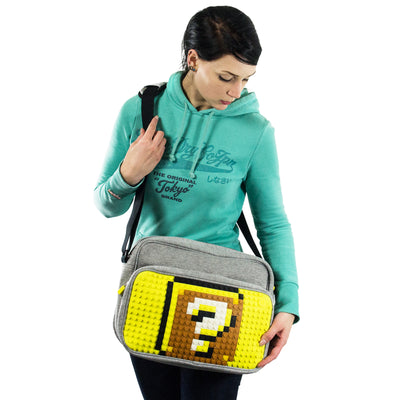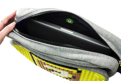 En plus de l'espace pour tes chefs-d'œuvre, le sac à bandoulière offre également de la place pour toutes sortes d'autres choses. Le sac dispose également de larges bretelles réglables. Tu peux t'assurer que les pixels tiennent bien dans le sac. Cette vidéo Vérifie-le.