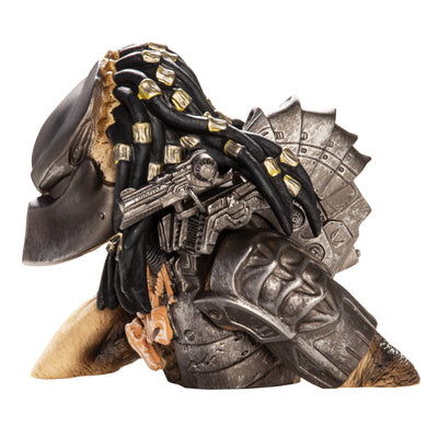 Le buste détaillé montre le Predator dans toute sa splendeur effrayante, avec son canon d'épaule et son masque. Tu peux remplir la tirelire d'argent par une fente à l'arrière et la vider par une ouverture fermée par un couvercle en bas. Nous tenons à préciser que la tirelire n'est pas efficace contre les musclés autrichiens qui se sont enduits de boue. ;)