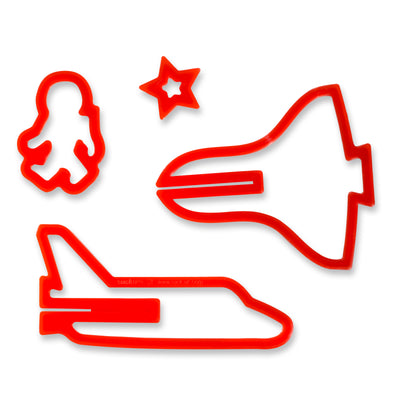 L'automne et l'hiver sont la saison des biscuits. Pour que tu n'aies pas à te contenter de représentations ennuyeuses - et scientifiquement insuffisantes - de croissants, d'étoiles et d'animaux mignons, nous nous sommes approvisionnés à temps pour Noël avec ces découpoirs à biscuits fusée. Avec eux, tu peux non seulement fabriquer des vaisseaux spatiaux plats, mais aussi de petits kits de construction à partir de ta pâte préférée. Une fois cuits, ils sont assemblés et tu obtiens l'une des quatre fusées tridimensionnelles. De plus, chaque vaisseau spatial est accompagné d'un petit pilote de biscuit. Soit un astronaute, soit un extraterrestre.