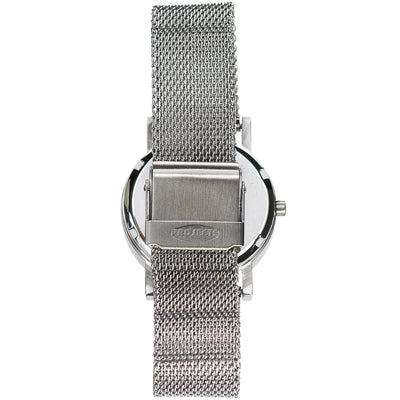 La montre est en acier inoxydable de haute qualité et est équipée d'un bracelet en acier inoxydable tressé avec un fermoir réglable, ce qui la rend agréablement fraîche au poignet et donc agréable à porter même les jours les plus chauds. Le matériau est conçu de manière à ce que les petits poils ou les vêtements sensibles ne soient pas affectés.