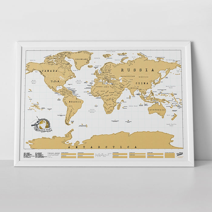 La carte du monde à gratter Scratch Map est une super décoration murale pour tous les globe-trotters qui aiment rentrer chez eux de temps en temps, les nostalgiques qui rêvent déjà de nouveaux voyages et les parents qui veulent marquer l'endroit où se trouvent leurs enfants globe-trotters sur cette carte très spéciale à partir des messages de vie qu'ils reçoivent de manière irrégulière.