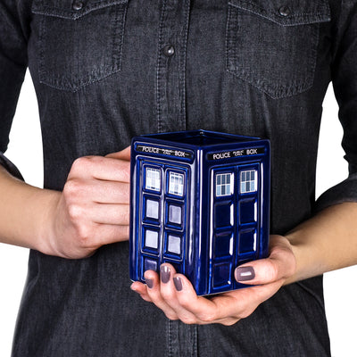 • Tazza in ceramica TARDIS con manico e coperchio rimovibile.