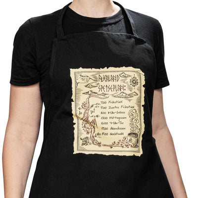 Passend dazu gibt es natürlich auch noch eine Küchenschürze Auenland-Speiseplan, sodass du den streng getakteten Tagesablauf der Auenland-Bewohner nie wieder vergessen wirst und rechtzeitig die jeweiligen Mahlzeiten zubereiten kannst. Selbst der Eine Ring kann dich nicht besser vor Flecken, Spritzern und Mehlstaub schützen – und die Schürze ist dazu sogar noch waschbar bis 30°C.