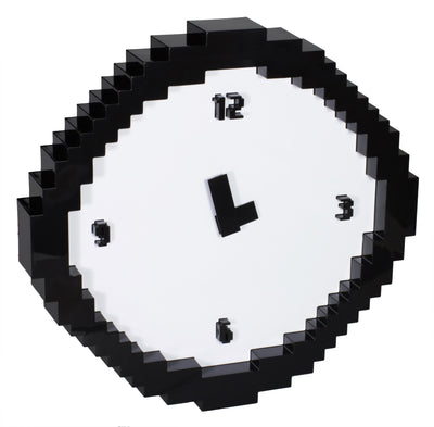 L'orologio da parete Pixel è realizzato interamente in plastica e ha un diametro di 30 cm, anche se ovviamente non è completamente rotondo, ma pixeloso.