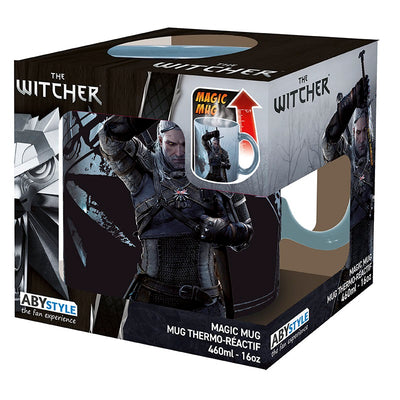 Im normalen, also kaltem, Zustand zeigt die Tasse Geralt und Ciri, sowie ein großes Hexer-Medaillon, das Symbol der Bruderschaft der Hexer. Ein solches Medaillon reagiert, sobald sein Träger in die Nähe eines magischen Wesens oder eines Monsters kommt. Und auf dieser Tasse ist das Monster näher, als es zunächst den Anschein hat!