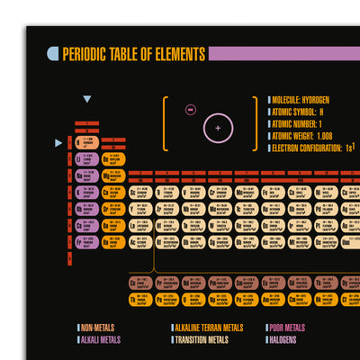 Natürlich gibt das LCARS auch das Periodensystem im charakteristischen Design des Star Trek-Betriebssystems wieder. Wir hätten nichts dagegen, wenn sich gewisse andere Anbieter daran ein Beispiel nehmen würden. Erstmal können wir aber zumindest das Periodensystem im LCARS-Design anbieten. Die Grundlage für das Design dafür stammt vom LCARS Computer Network, an dieser Stelle unser Dank dafür, dass wir Eure Vorlage verwenden durften. :)