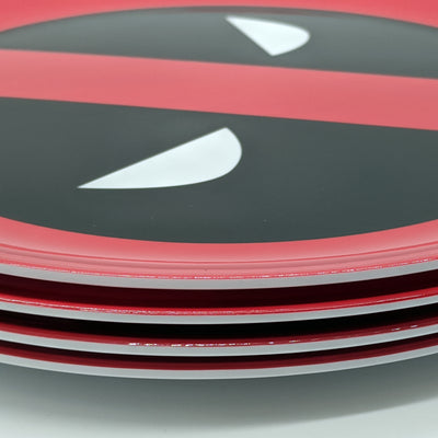Desalniettemin mag de „Marvel Deadpool“-bord-set in geen enkel nerd-huishouden ontbreken: Deze set bevat vier borden van stevig kunststof, die het logo van de huurling met de losse mond laten zien. Dus wees niet verbaasd als de borden ineens met je praten! ;)