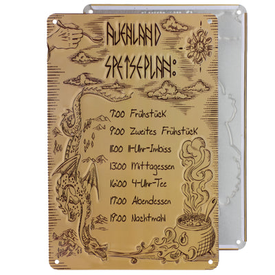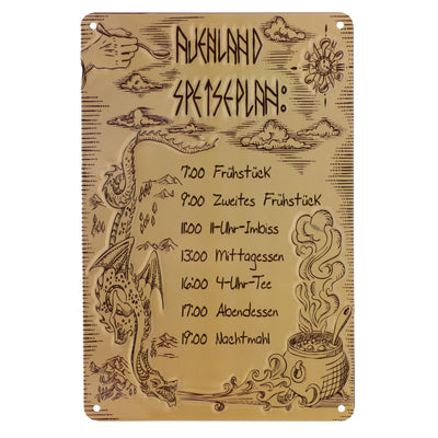 • Geprägtes Blechschild mit den 7 typischen Mahlzeiten der Auenlandbewohner