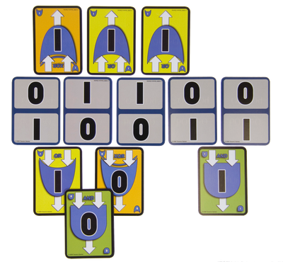 Zwei Spieler sitzen sich dabei gegenüber und müssen aus AND, OR und XOR eine jeweils vollständige Schaltung an eine vorgegebene Bitreihe anlegen. Dabei ist logisches und strategisches Denken gefragt. Und auch die Schaltung des Gegners muss im Auge behalten werden, denn sie kann mit der gefürchteten NOT-Karte sabotiert werden. Spannung und Interaktion sind beim bOOleO Kartenspiel also garantiert!