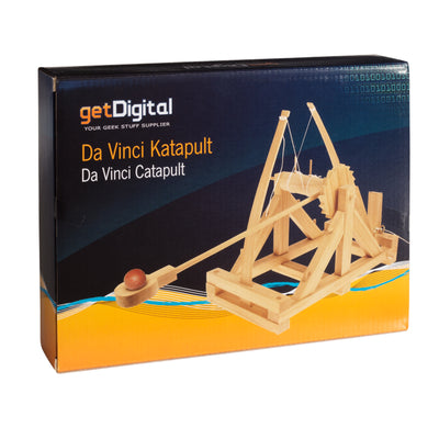 Mit diesem Bausatz lernst Du die kriegerische Seite des Universalgenies Leonardo da Vinci kennen. Tatsächlich beherrschte dieser nicht nur Malerei und Bronzeguss, sondern tüftelte auch an allerlei Maschinen, darunter dieses Katapult zum Zerschmettern von Feinden.