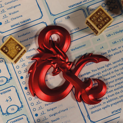 • Das Et-Symbol des Dungeons and Dragons Logos als rotes Medaillon inklusive Display-Aufsteller
