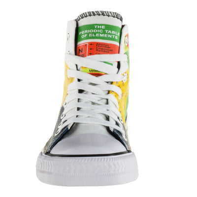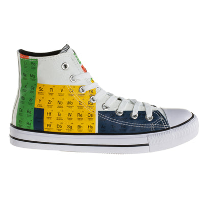 • Weiße Textil-Sneaker mit aufgedrucktem Periodensystem.