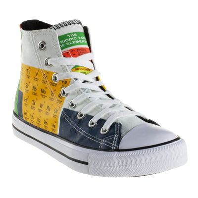 Vielleicht wusstest Du es noch gar nicht, auch Schuhe können geekig sein. Und zwar im besten Sinne. Vorbei sind die Zeiten, in denen man sich seine Textil-Treter selber mit Filzstift verzieren musste, um ihnen etwas nerdigen Glanz zu verleihen. Bei den T-Shirts haben wir ja schon ganz gut vorgelegt, jetzt haben wir endlich auch die Geek Shoes im Sortiment. :) Für die Walther Whites unter Euch hier das Modell mit dem Periodensystem der chemischen Elemente, für Verspielte gibt es auch die Block-Schuhe. Die Geschichte der Geek Shoes haben wir in unserem Blog zusammengefasst.