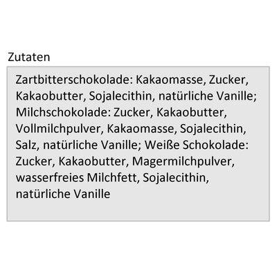 • Enthält Silikonform, 3 Sorten Schokolade und eine Anleitung