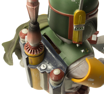 Dieser Aufforderung solltest Du unbedingt nachkommen, denn es wird sich für Dich lohnen! Im Inneren dieser Boba Fett Büste ist nämlich ganz viel Raum für Münzen und sogar Scheine, die Du einfach in den Schlitz über seinem Raketenrucksack steckst. Niemand wird besser auf Deine Ersparnisse aufpassen, als Boba, das kannst Du uns glauben!