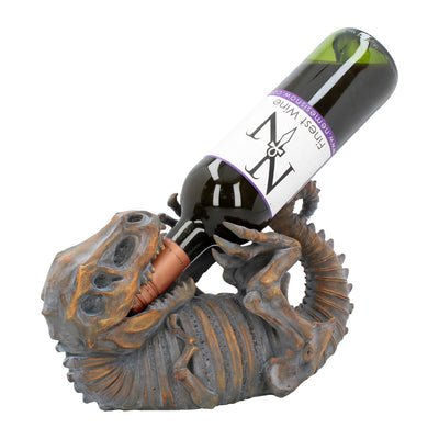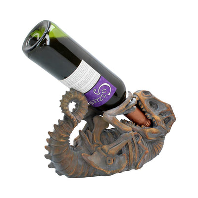 Natürlich ist das Original-Skelett im Museum gelandet, Du kannst Dein Zuhause aber mit einer detailgetreuen Nachbildung aus Resin dekorieren, die handelsübliche Weinflaschen aufnimmt. Und keine Sorge, der T-Rex kann Dir den guten Tropfen nicht wegsaufen - mit seinen kurzen Armen bekommt er den Korken oder den Schraubverschluss nicht raus bzw. auf. ;)