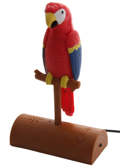 Der USB Papagei verhält sich genau wie ein echter Papagei: Er kann sich merken, was Du gesprochen hast und wiederholt dies dann. Und wie bei einem echten Papagei ist der Zeitpunkt, zu dem die aufgenommene Sprache wiedergegeben wird, zufällig. Du solltest also genau aufpassen, was Du sagst, wenn Du nicht Deine Schwiegermutter beleidigen willst.