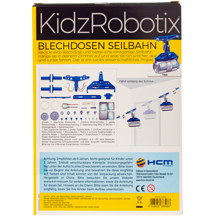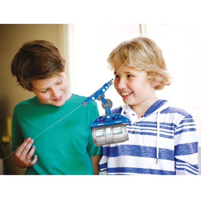 • Bausatz für eine elektrische Seilbahn mit einer recycelten Dose als Gondel