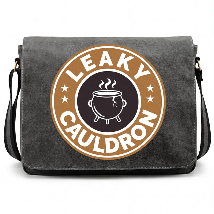 Das Leaky Cauldron ist der erste Anlaufpunkt für alle, die aus der Muggelwelt in die Zaubererwelt eintauchen. Versteckt in der Charing Cross Road wartet dort ein rissiger Kessel auf seine Gäste - und genau dieser legendäre Topf ziert dieses Design im unverkennbaren Coffeeshop-Badge-Stil. Wer hinschaut, erkennt sofort den Riss im Kessel. Leaky eben. ;)